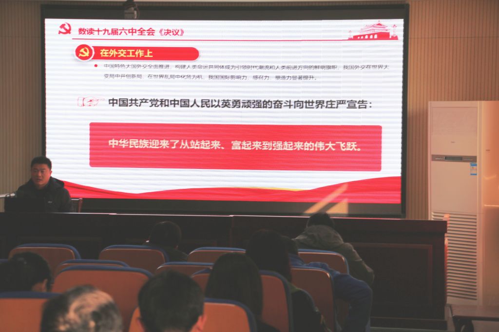 会上,院党委副书记刘飞带领全体教职工学习了《决议》的基本框架和主要内容,着重解释了“两个确立”的决定性意义,《决议》指出,党确立习近平同志党中央的核心、全党的核心地位,确立习近平新时代中国特色社会主义思想的指导地位,反映了全党全军全国各族人民的共同心愿,对推进中华民族伟大复兴历史进程具有决定性意义。之后,他分别从“十个明确”、“十个坚持”、“十三个方面”、“三次飞跃”介绍了习近平新时代中国特色社会主义思想的核心内容,新时代党和国家事业取得的历史性成就、发生的历史性变革,以及马克思主义中国化的飞跃等方面的内容。