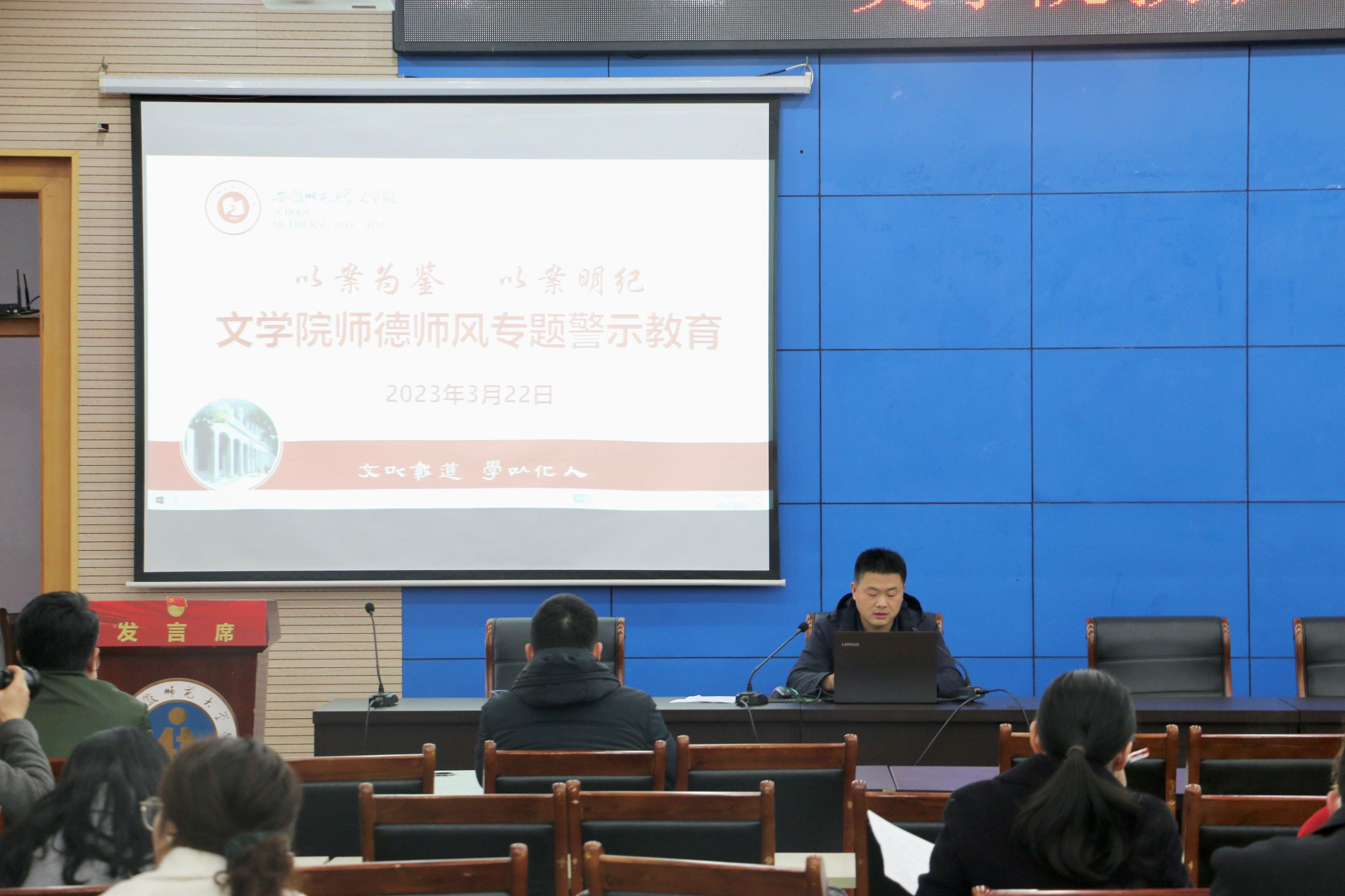 3月22日,必赢线路检测3003no1召开2023年全面从严治党工作暨师德师风专题警示教育大会。学院全体教职工参加会议。会议由学院党委副书记(主持党委工作)戴和圣主持。