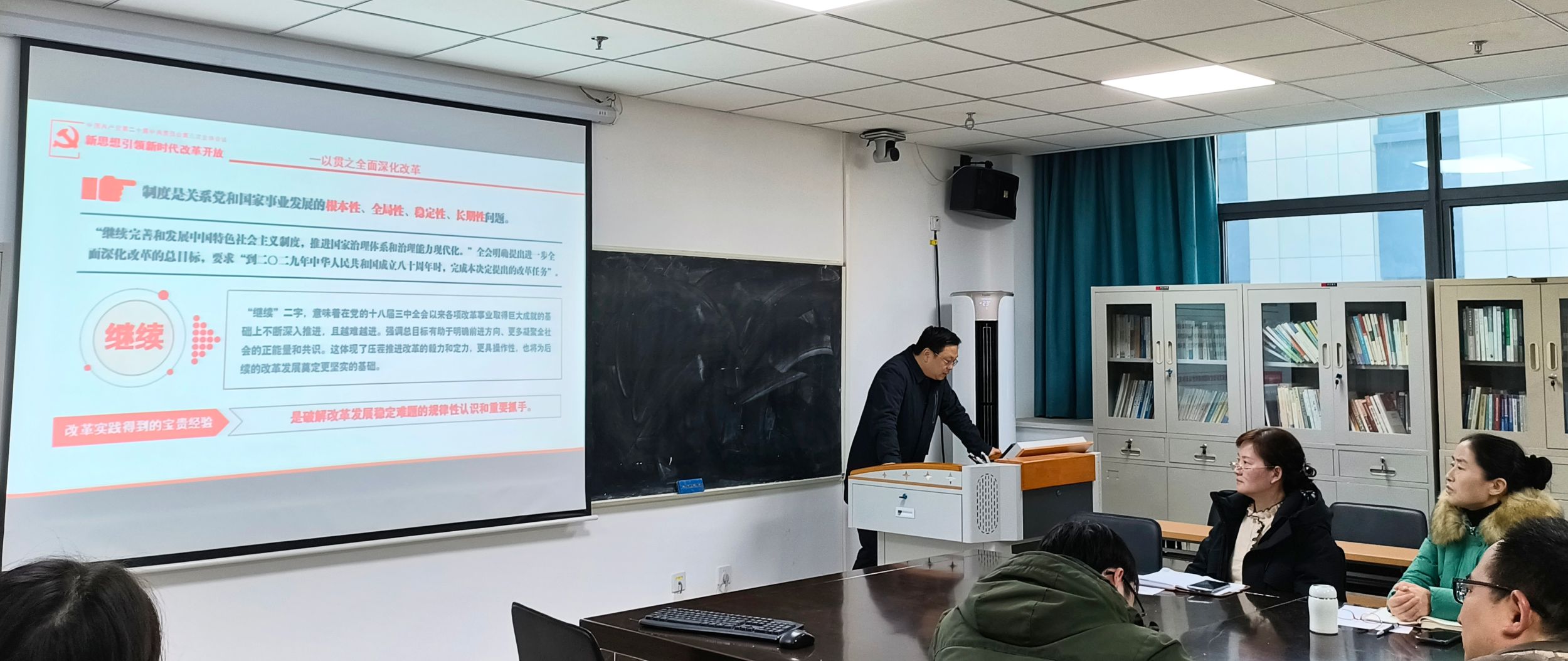 紧接着,纪检委员胡承佼为大家带来了题为“从党的二十届三中全会部署看进一步全面深化改革走向”的党课。围绕党的二十届三中全会的各项部署,从“一以贯之全面深化改革”“坚持科学改革方法”“守正创新保持改革定力”以及“把牢改革价值取向”四个方面进行了深入浅出的讲解。