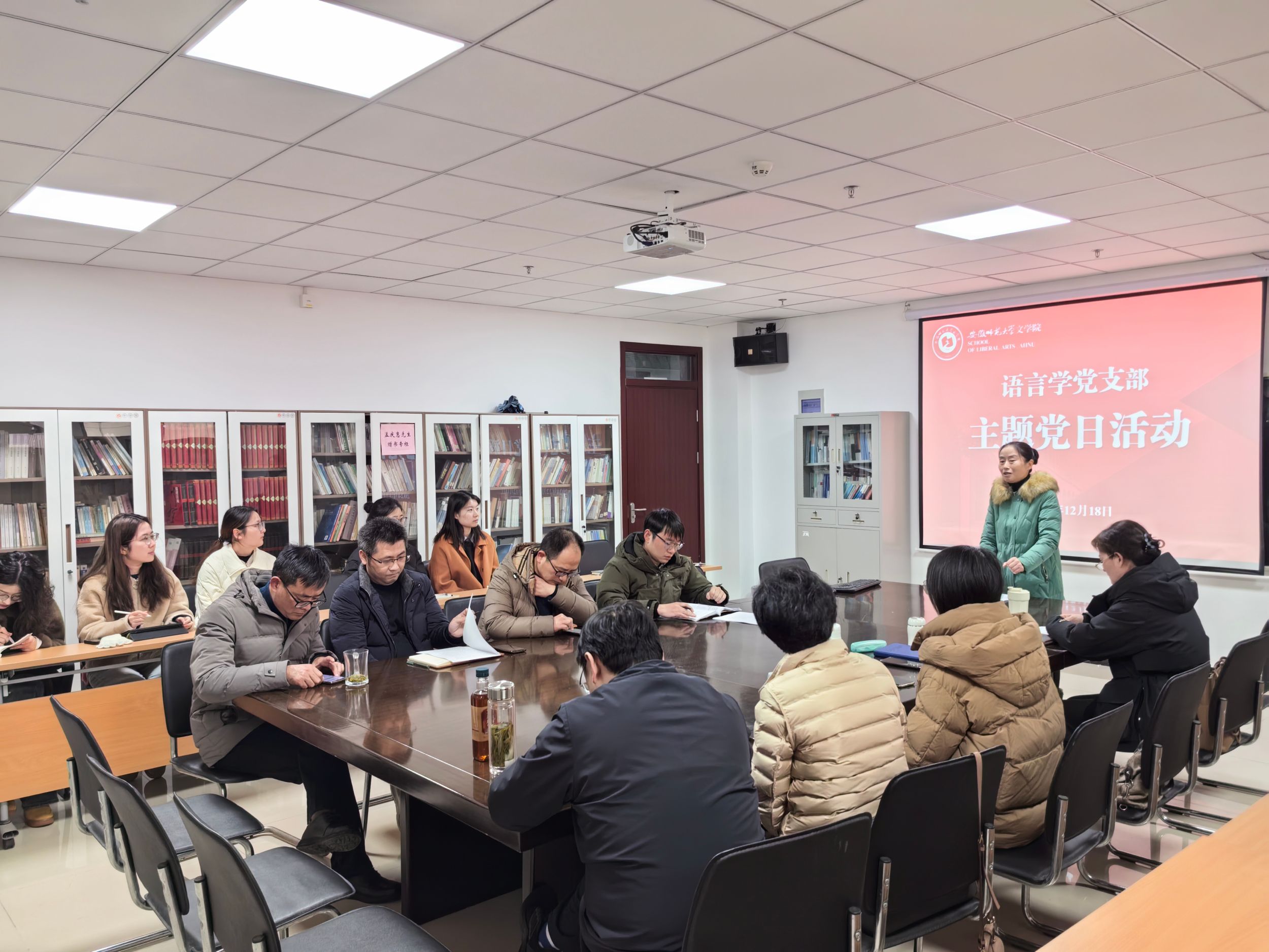 2024年12月18日下午,必赢线路检测3003no1语言学党支部在花津校区文典楼F313举办主题党日活动。活动由语言学党支部书记汪红艳主持,必赢线路检测3003no1语言学党支部全体在职党员以及中国语言文学研究生第三党支部的党员代表参与此次活动。