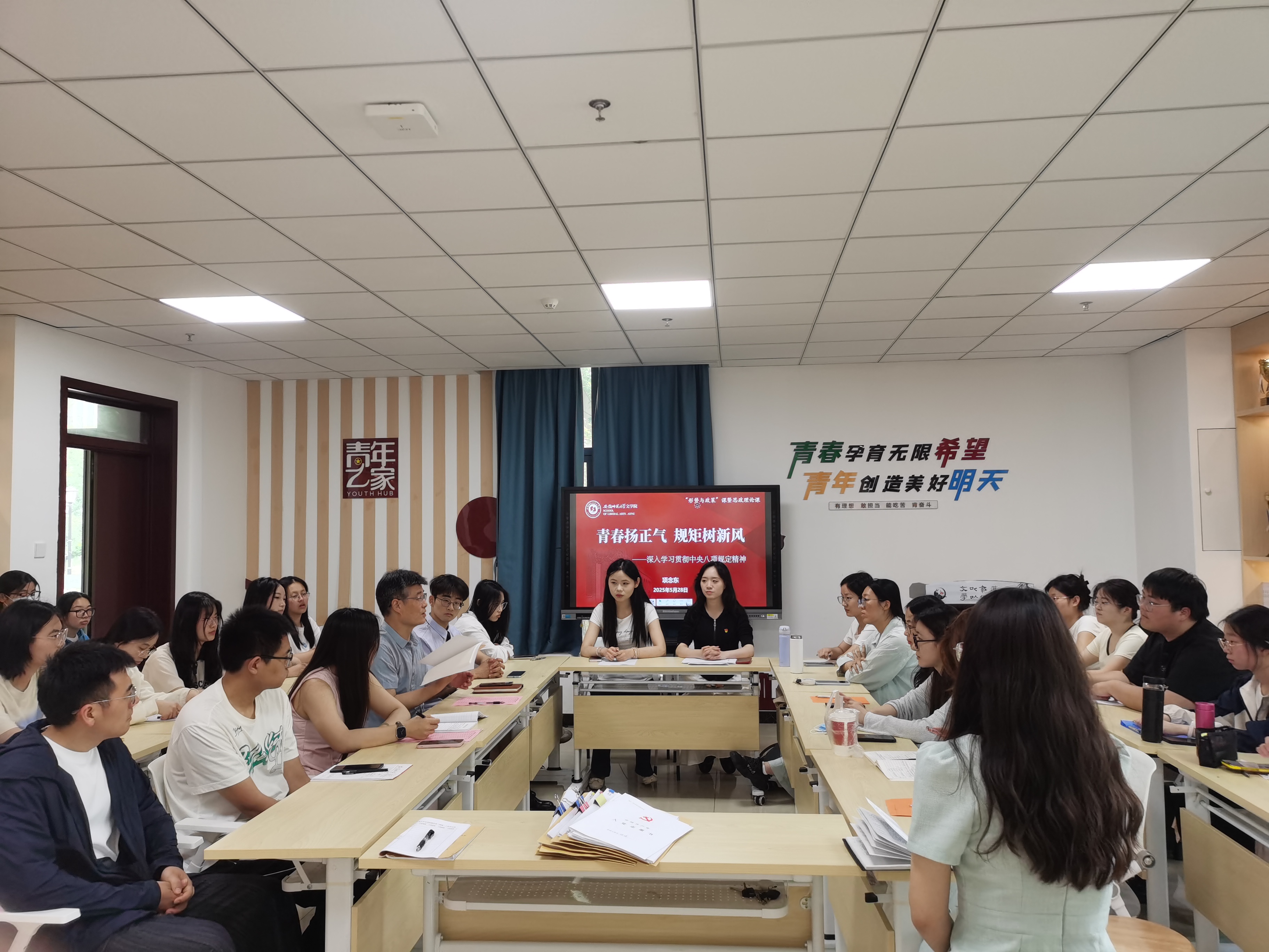5月28日上午,必赢线路检测3003no1院长项念东以“青春扬正气,规矩树新风”为主题,为汉语国际教育专业、卓越班本科生党支部全体成员讲授了一堂深刻且富有启迪的“形势与政策”课暨思政理论课。