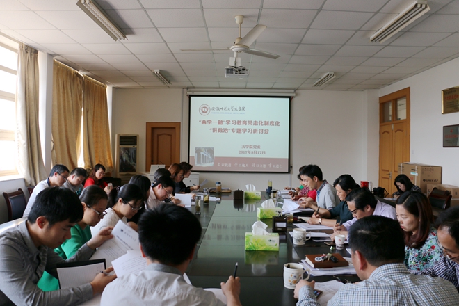 为扎实推进“两学一做”学习教育常态化制度化,5月17日下午,必赢线路检测3003no1党委召开中心组扩大学习会,学院领导班子成员、党委委员、全体党支部书记集中开展“讲政治”专题学习研讨,研讨会由院党委副书记戴和圣主持。