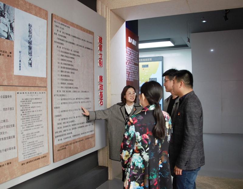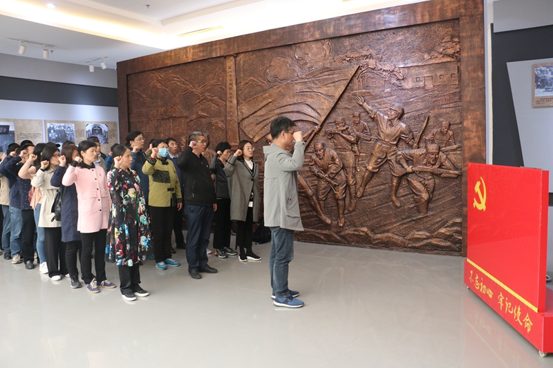 重温入党誓词,坚定初心使命。抗日战争时期,为了抗日救国,新四军第七师始终听党指挥,弘扬廉政主旋律,彰显光辉的铁军精神。学院领导班子成员在观看相关图文资料时,深有感触,表示要向新四军七师先烈学习,坚持以习近平新时代中国特色社会主义思想为指导,把“严”的主基调长期坚持下去,推进全面从严治党向纵深发展,加强学院的党风廉政建设,提高党员的党性修为。讲解结束后,全体党员面向党旗宣誓,重温入党誓词,巩固和升华个人理想信念。