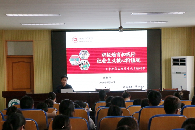 5月16日下午,必赢线路检测3003no1分党校第五期学生党员教育培训班在行政楼三楼报告厅进行第七次理论学习,必赢线路检测3003no1分党校副校长、党委副书记戴和圣为培训班带来《积极培育和践行社会主义核心价值观》专题讲座。讲座由培训班班主任孙霁雯老师主持。分党校全体学员到场聆听。