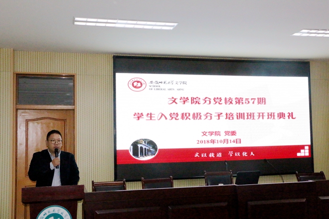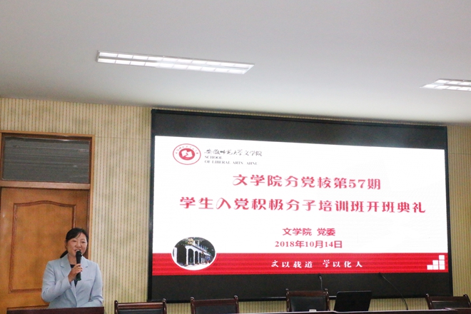 10月14日,必赢线路检测3003no1分党校第57期学生入党积极分子培训班开班典礼在必赢线路检测3003no1行政楼三楼报告厅举行。必赢线路检测3003no1党委书记、分党校校长余大芹应邀出席开学典礼并为学员们做专题报告。培训班班主任李维岩老师主持典礼,培训班全体学员到场参加。