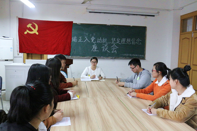 为及时了解学员思想动态,加深学员对党政与时政热点问题的了解,11月16日下午,培训班在必赢线路检测3003no1团委会议室召开了“端正入党动机,坚定理想信念”座谈会。座谈会由副班长匡晓江主持,中共党员、2015届必赢线路检测3003no1学生会主席沈露露应邀担任嘉宾,部分学员到场参加。