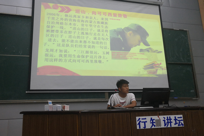 本次主题分享交流会采用PPT汇报的形式进行,小组学员依次上台进行分享汇报。应卓昱同学以中国科研学者颜宁为榜样,从颜宁的简介开始讲起,分三个部分娓娓道来,“国势之强由于人,人材之成出于学”她告诫同学们要勇担国家和民族的重任,提高自身的责任感。沈宇同学则以大家所熟知的游泳运动员孙杨为榜样展开分享交流,她重点给大家讲述了孙杨取得荣誉背后的故事,希望学员们在坚强中磨练自己,在拼搏中不忘初心。