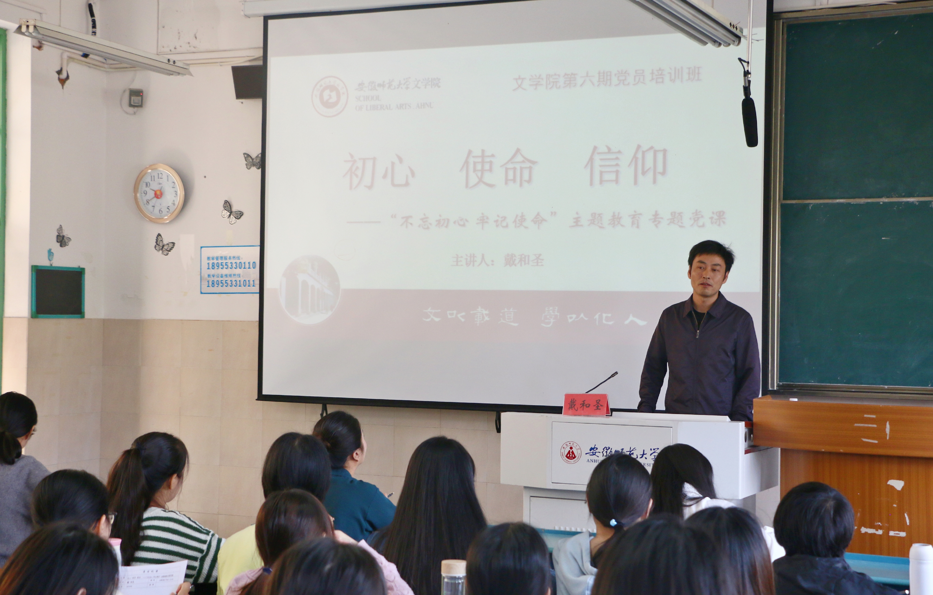 典礼在庄严的国歌声中拉开帷幕。班主任宁嘉惠首先介绍了本期培训班的教学实践活动安排,强调了党员培训班课程的严肃性和纪律性,她希望全体学员通过本期培训班的学习提升自己的政治素养和理论水平。2016级汉语国际教育专业曾丹扬同学作为学员代表发言,她对学院提供此次学习机会表示感谢,并代表全体学员向党组织郑重承诺将认真进行理论学习,积极参加实践活动,注意理论联系实际,力求学有所获、学以致用。开班典礼上,必赢线路检测3003no1党委副书记戴和圣从三个方面对学员提出希望和要求:端正态度,深刻认识党员教育培训的重要意义;明确目标,努力提高培训学习效果;严格要求,圆满完成本次培训学习任务。典礼结束后,戴书记为学员们带来第一讲专题党课——《初心 使命 信仰》。