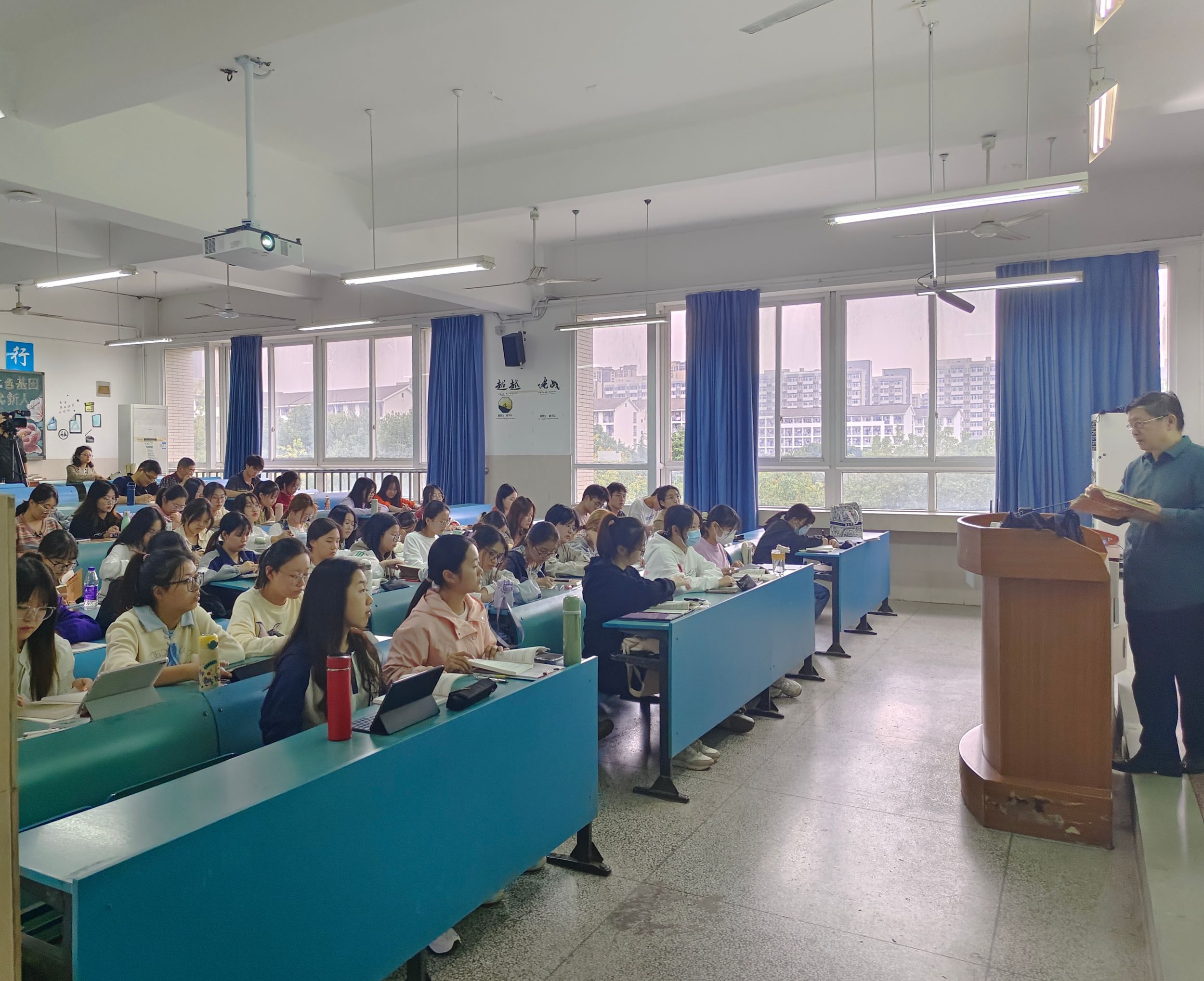 凭借深厚的学术修养、幽默的语言艺术、循循善诱的教学方法、严谨谦和的教学态度,詹老师化枯燥的课堂为乐趣的宝库,启迪学生自主探究,促发学生深入思考,学生们深受吸引,觉得韵味无穷。