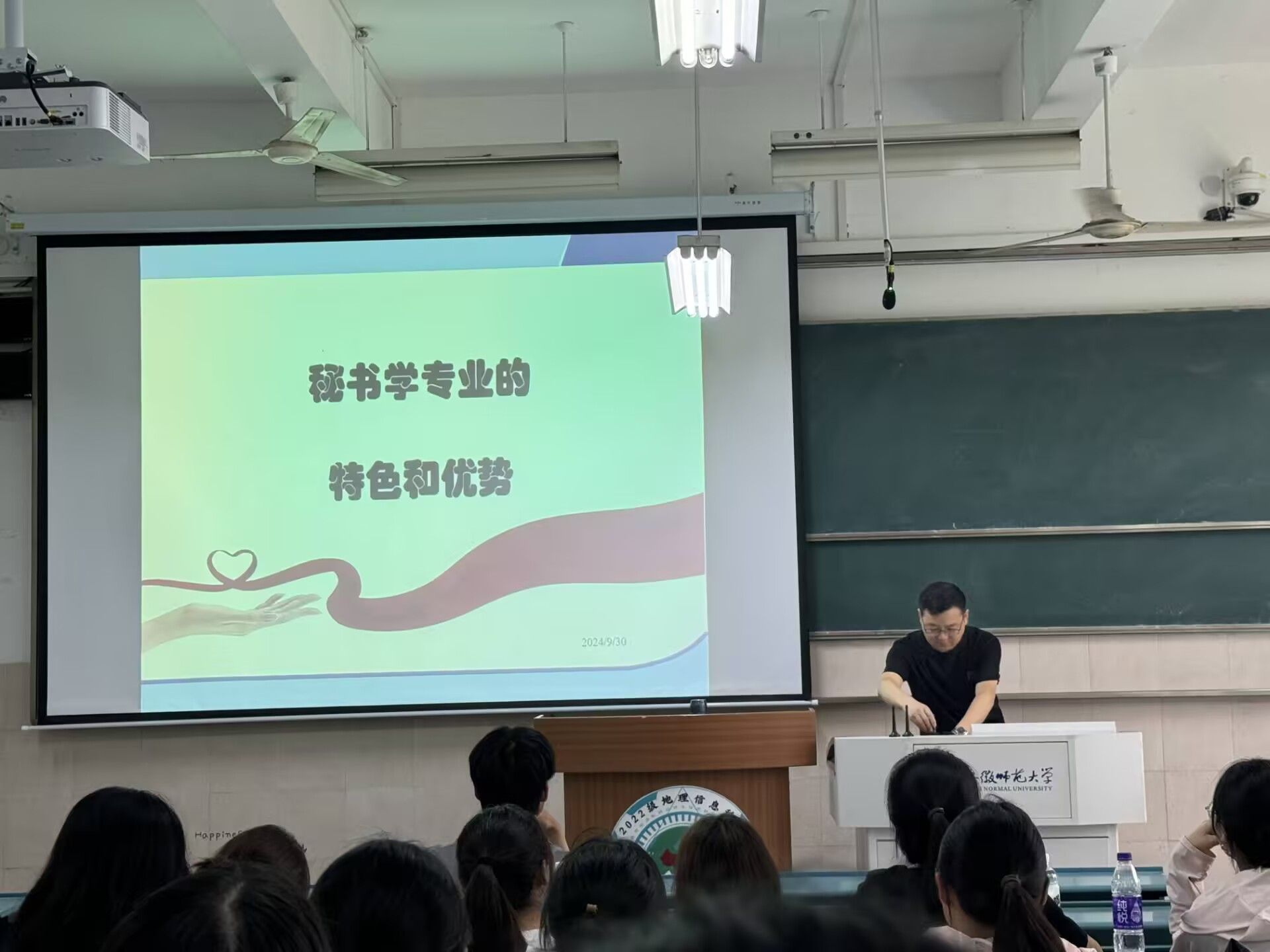 2024级秘书学在行知楼2050301举办了专业介绍会,该专业负责人陈俊从秘书学专业的诞生和需求、优势特色以及师大秘书学的办学历史等几个方面作了介绍,同时与同学们讲解了秘书学专业的考核标准和学分设置情况等。