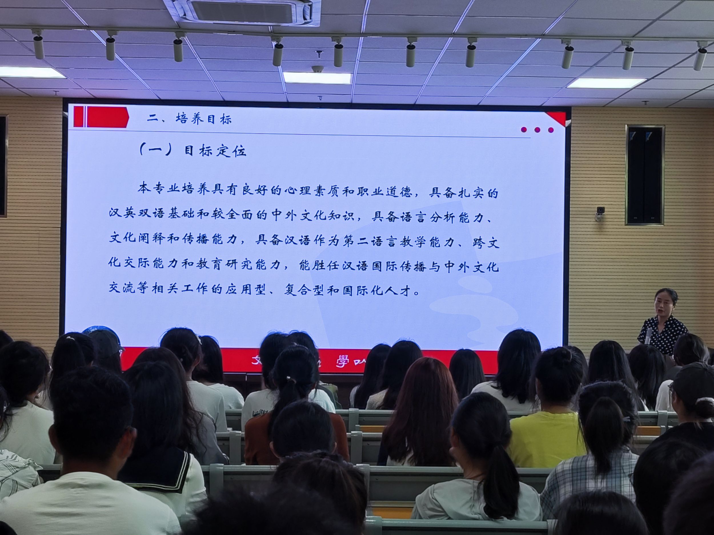 在2024级汉语国际教育专业师生见面会上,该专业负责人汪红艳从汉语国际教育专业的基本概况、培养目标以及课程设置、就业方向等方面与同学们作了交流,勉励同学们坚定专业自信,做应用型、复合型的国际化人才。