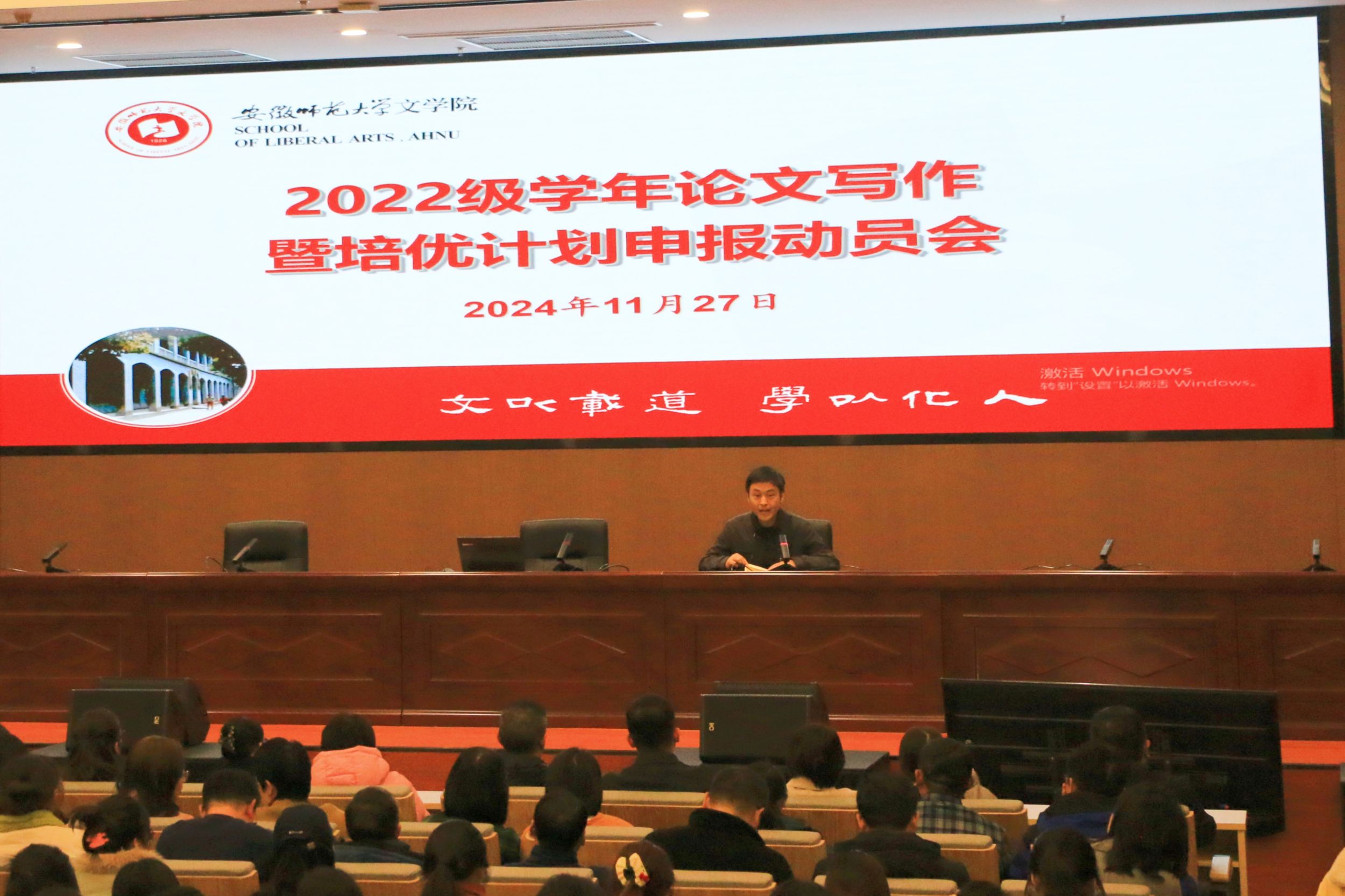 11 月 27 日下午,必赢线路检测3003no1于文典楼西裙楼3楼报告厅召开2022级学年论文写作暨培优计划申报动员会。必赢线路检测3003no1党委副书记(主持党委工作)戴和圣、各专业负责人、学年论文指导老师以及2022 级全体本科生参会。动员会由戴和圣主持。