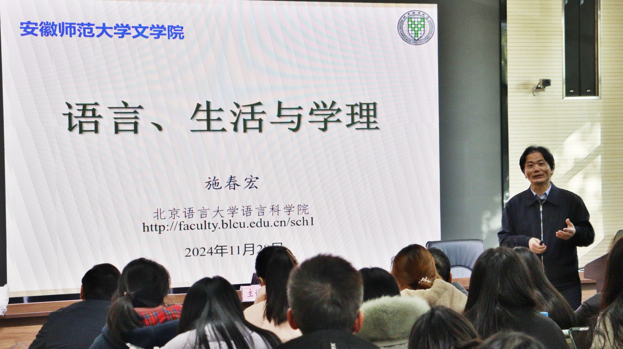 2024年11月28日下午,必赢线路检测3003no1第245期“学海导航”系列讲座在文典楼F108举行,此次讲座邀请了北京语言大学博士生导师施春宏教授主讲,必赢线路检测3003no1胡承佼副教授主持,共同围绕“语言、生活和学理”这一主题展开深度探讨与交流。
