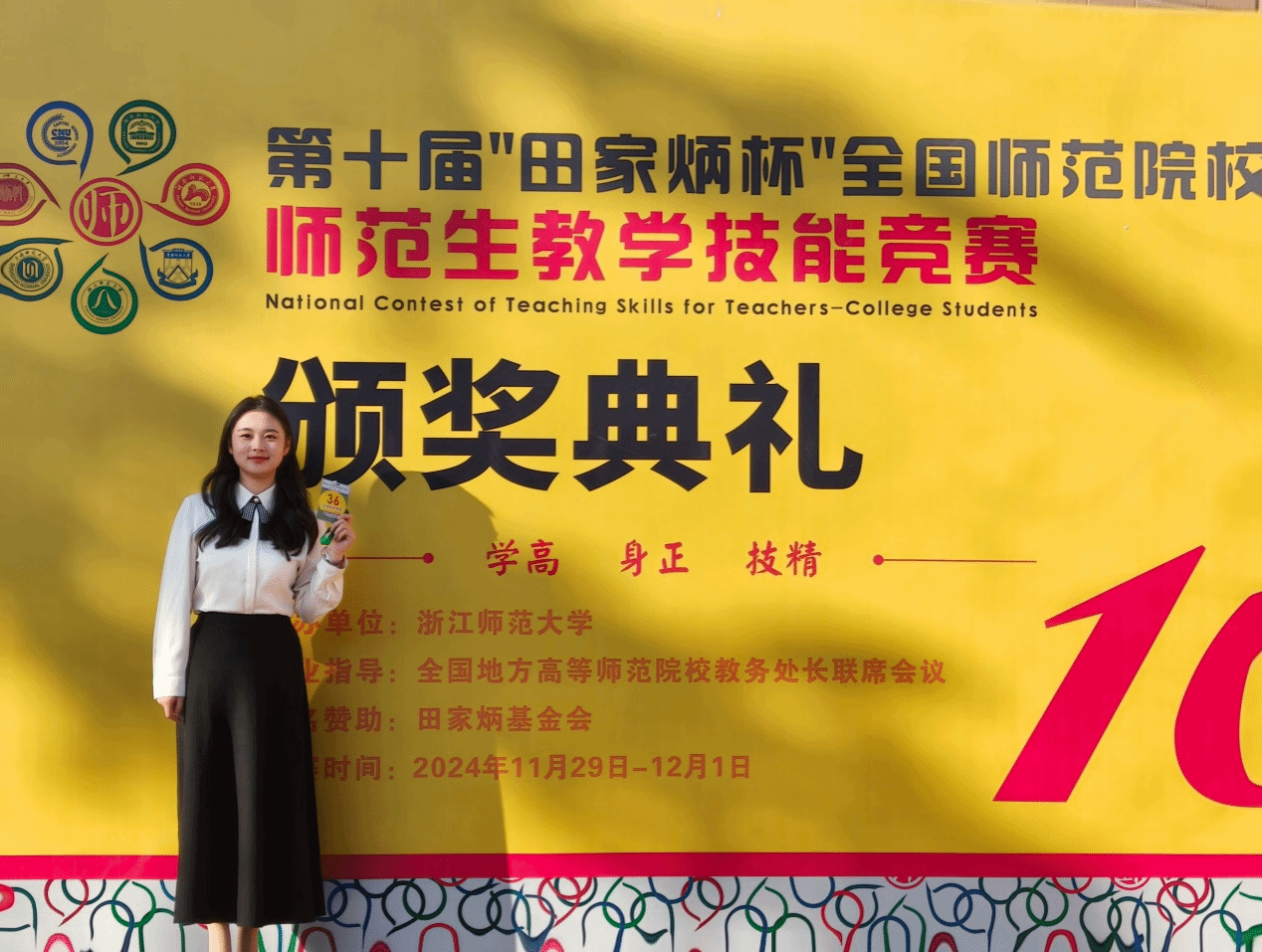 11月30日至12月1日,第十届“田家炳杯”全国师范院校师范生教学技能竞赛在浙江师范大学举行。来自全国156所师范院校的520名优秀学子入围决赛进行角逐,必赢线路检测3003no12021级汉语言文学(师范)专业王欣瑞同学荣获汉语言文学组一等奖。