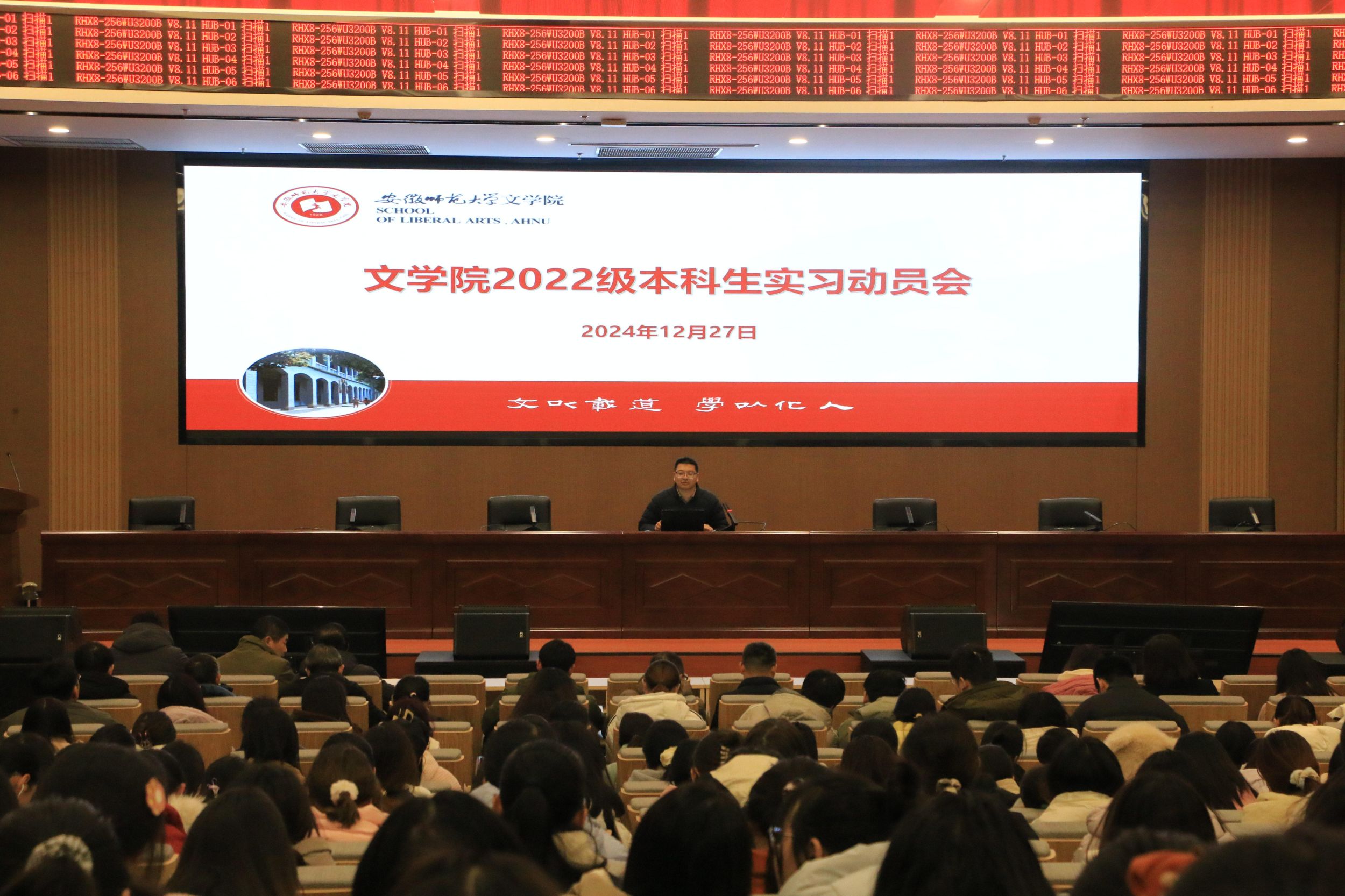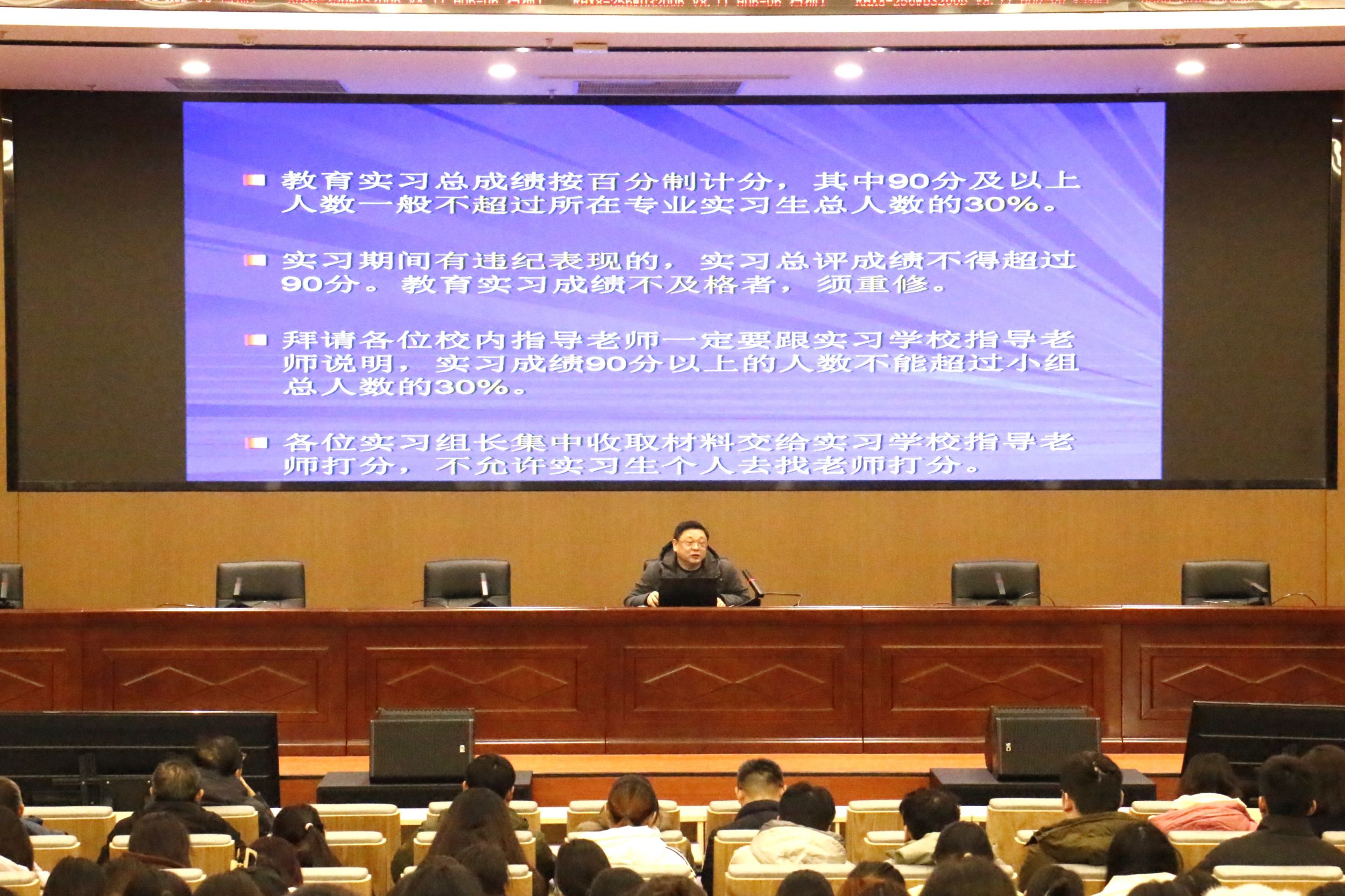 为扎实推进专业人才培养,达成毕业要求,磨砺学生从教技能,12月27日下午,必赢线路检测3003no1于文典楼西裙楼三楼报告厅举行2022级本科生实习动员会。必赢线路检测3003no1院长项念东、各专业负责人、实习指导老师,以及2022级全体本科生参加了动员会。