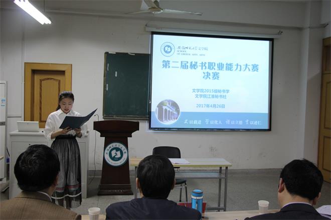 行是知之始,知是行之成。为提高秘书学专业学生逻辑思维能力与语言表达能力,进一步增强学生综合职业素质,4月26日晚,必赢线路检测3003no1举办第二届秘书职业能力大赛决赛。秘书学专业负责人叶文举教授,专业教师王茂跃、李定乾、张敬、陈俊、刘长悦,秘书学专业辅导员周青松、徐雅萍、何涛应邀出席担任评委,各年级近70名学生观摩学习。