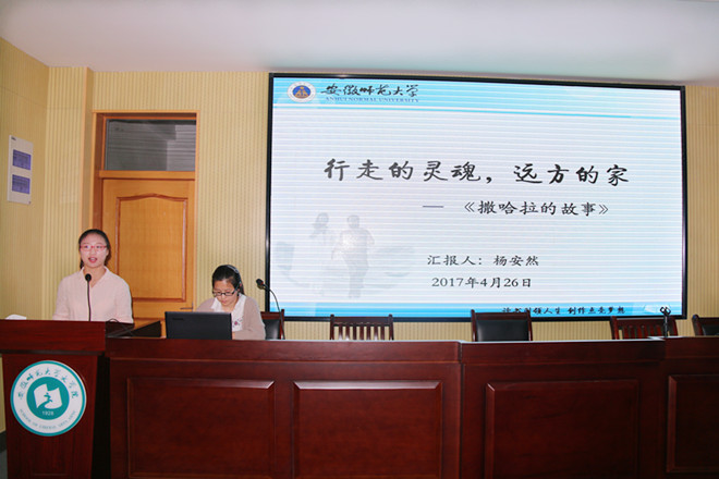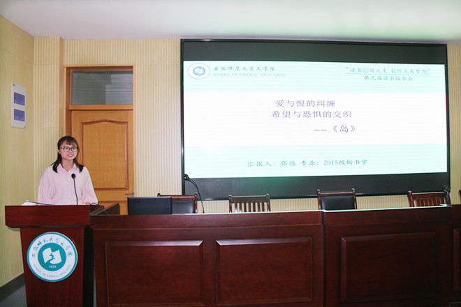 经过班级的选拔,共31名同学进入决赛。六分钟的时间里,参赛选手借助ppt展示,将自己的读书心得娓娓道来。14级秘书学专业的樊敏华感动于柴静的《看见》一书中对生命的尊重、对自然的关怀,她表示自己也会像柴静一般,在冷静的思考中探寻真相,在希望的支撑下执着向前。16级汉语言文学非师范专业的蒋笑言把萧红的《呼兰河传》比作一篇叙事诗、一幅多彩的风俗画、一串凄婉的歌谣,用诗意的语言跟大家分享自己的见解。15级汉语国际教育专业的张嘉欣从余秋雨的《文化苦旅》中领略中国典雅柔媚的文化底蕴和积淀千年的厚重历史,从而进一步体会书中的“苦”与乐、“苦”与哀、“苦”与痛。“每想你一次,天上飘荡一粒沙,从此形成了撒哈拉”,15级卓越语文实验班的杨安然在细品文本之后,赋予三毛笔下的《撒哈拉的故事》以土黄的颜色。16级汉语言文学师范专业的汪璇在村上春树《挪威的森林》里感悟青春,将其比作一场不问归期的奇幻漂流,并进一步探讨死亡与永生的关系。“‘月亮’代表高高在上的理想,‘六便士’深陷在泥里,象征世俗的生活”,16级戏剧影视文学专业的吴珊珊从威廉·萨默塞特·毛姆的《月亮与六便士》中感悟理想与现实之间的差别……或慷慨激昂,或优雅婉转,或理性深刻,选手们的精彩汇报给在场的观众带来一场心灵的文化盛宴。现场气氛热烈,掌声频发。