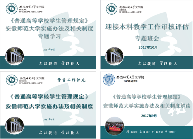 学期初,学院党政联席会议进行研究和专题学习,教职工大会上制定学习安排,认真组织学生管理干部和专业负责人学习相关制度,全面提高管理服务工作能力和水平,更好地发挥管理制度维护学校教育教学秩序、规范学生行为、保障学生权益、促进学生全面发展的重要作用。辅导员例会上,院党委副书记戴和圣从“依法治校”“立德树人”“以生为本”的角度出发,从新规定概况、新规定出台的主要背景、新规定修订的主要原则、新规定十大变化等四个方面,对《普通高等学校学生管理规定》进行了深入详实的解读,强调全体辅导员应仔细研读和及时向学生传达文件具体细则和精神,加强学生自我管理、自我服务、自我教育、自我监督的意识。