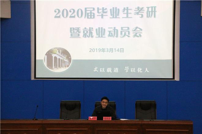 月14日晚,必赢线路检测3003no12020届毕业生考研暨就业动员会在敬文报告厅如期举行。必赢线路检测3003no1党委副书记戴和圣、副院长项念东应邀为同学们做考研暨就业辅导,辅导员李震、周青松、李维岩及2016级全体学生参加动员会。