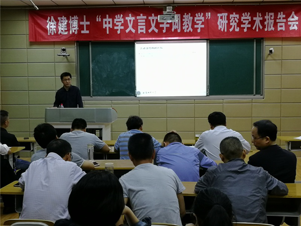 2019516日晚,我院徐建老师应邀赴望江中学,面向该校语文教师,做了一场题为“中学文言文字词教学研究”的学术报告,望江中学书记戴旺苗、副校长熊淑安及全体语文教师出席报告会。