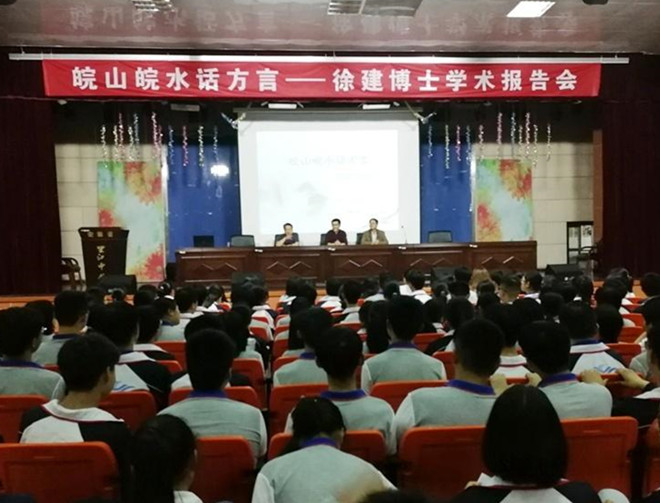 2019515日晚,我院徐建老师应邀到望江中学为该校高二年级全体师生做了以《皖山皖水话方言》为主题的学术报告。
