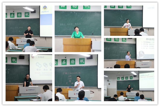 参加比赛的青年教师准备充分,积极展示,教学风格各具特色。常清老师深入浅出地讲解了领导的行为理论;刘长悦老师生动解读了秘书角色与秘书工作;王轶老师以《秋风辞》的诗句为引,开启教学,娓娓道来;张敬老师以PPT的合并形状为主要授课内容,生动的展示了创意图形任意做;石润宏老师对讲课内容十分熟悉,循序渐渐的讲解了律诗的平仄律;李小荣老师沉着冷静地分析了奏本的特点及发展历史;徐建老师结合鲜活的方言视频和语音,生动解析安徽方言的地理分布。