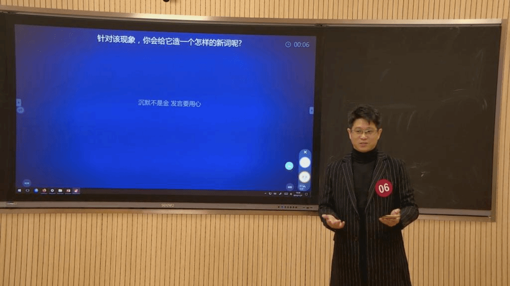 在两个多月的备赛过程中,饶宏泉老师不断学习领会先进的教育理念,积极探索混合式教学,思考和践行“课程育人”。他以师范专业核心基础课程《语言学概论》为切入点,探究线下和线上教学内容的分配,录制微课视频,整合类型多样的教学资源,精心设计思考预习题,利用智慧平台与学生积极互动,动态调整课程建设。教学设计上,他结合师范专业的认证要求,坚持产出导向,注重培养学生“基础扎实、学会学习、学会思辨、学会研究”,细化和落实教学目标。结合教材分析和学情分析,从提升学生的综合分析能力、逻辑思辨能力出发,致力于打造课程的高阶性、创新性和挑战度,在教学设计的整体思路上强调“精准教学”。课堂教学环节,饶宏泉老师以“问题”为驱动,综合采用了混合式教学、案例教学和互动讨论,有效地实施了师生互动和全过程考核。现场教学气氛活跃,学生参与度极高,内容深入浅出,循循善诱,得到评委专家和学生的一致好评。赛后,饶宏泉老师在总结时,认为两个月的建课、磨课和赛课,给自己印象最深刻的还是教育理念以及教学思想的冲击力很强。他也表示将以此为契机,系统深化教学改革,积极建设一流课程。