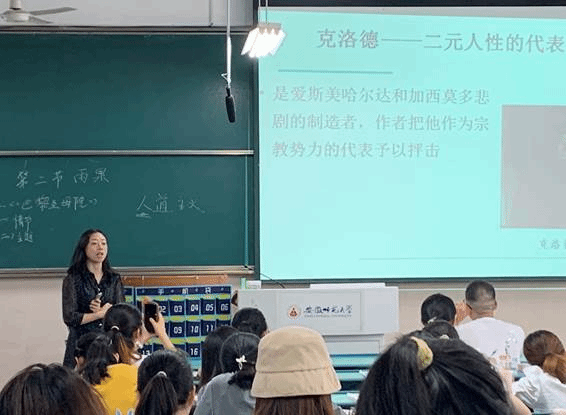 李老师对《巴黎圣母院》的情节讲解细致,同时联系浪漫主义文论和历史语境深入浅出地解释作品的文学美,使学生能较好理解雨果小说的艺术特征,进而对浪漫主义文学有一个较全面清晰的认识。参与观摩的老师一致认为李老师的授课精彩生动、丰富多彩。在介绍小说情节内容同时,也通过讨论交流巧妙地启发学生细读文本、举一反三,其研讨式的教学方式获得了较好的学习效果。