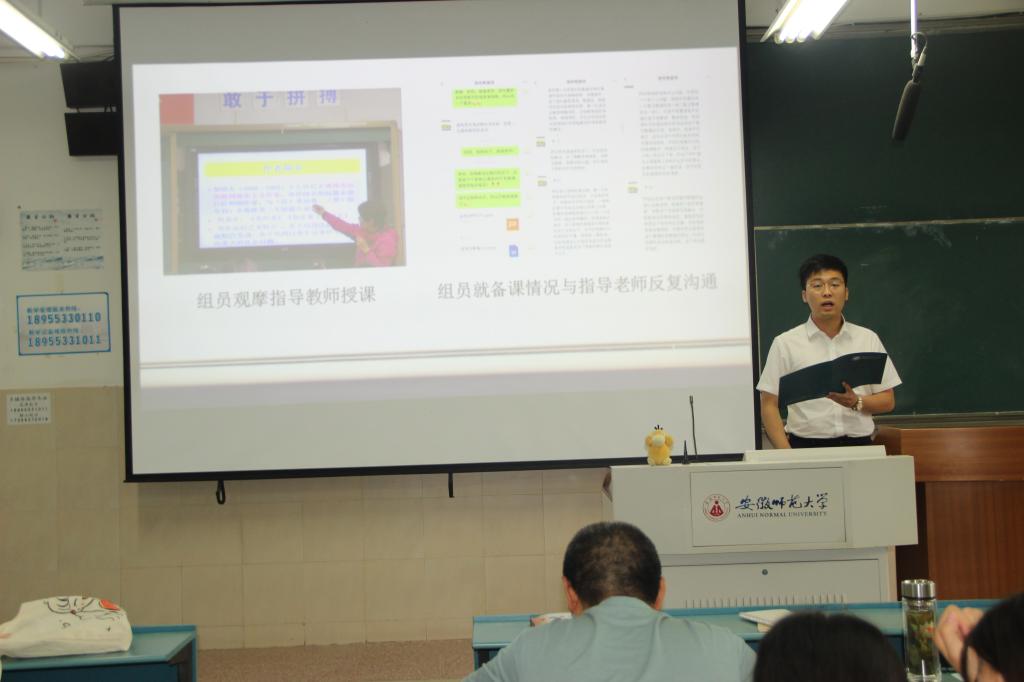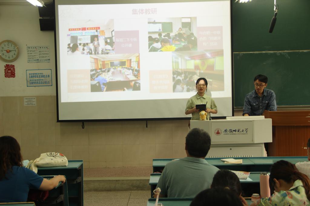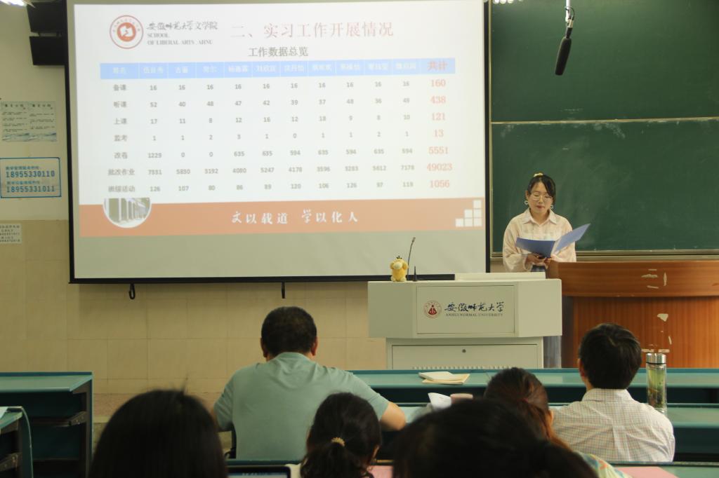 语兮文兮,惟学无际。优秀实习生们的成长与进步离不开学院的高度重视和精心组织,离不开实习基地校的全力支持和悉心栽培,离不开指导教师们的耐心点拨和教育引导,也离不开小组成员的交流探讨和共同努力。在教学楼2050104教室,17个实习小组代表认真总结成果,汇报小组全体成员的教育实习工作情况。太湖中学汇报人分别从语文课堂教学、班主任工作、《红楼梦》整本书阅读、党史党情教育四个方面,对小组实习期间的各项工作进行了分享,对实习组成员们的业务进步与精神成长作了全方位的展示。潜山野寨中学实习小组定期召开教学实习、班主任工作实习、教育研习工作总结会和研讨交流会,组织开展集中上课与评课活动,组员积极参与实习基地校的教研活动,教育实习各项工作扎实有序开展,成果颇丰。各小组成员都以饱满的热情、认真负责的态度、严谨务实的作风对待教育实习的各项工作。饶宏泉、尹达、张应中、邹春秀、王轶、李震6位老师及各年级师范生代表共89人,在听完整场汇报交流后,按照优秀指标点,对他们心目中的优秀实习小组、优秀指导教师和优秀实习基地进行了现场投票。这次评优将综合评委投票率和学生投票率,评定优秀得主。