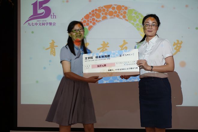 下午6时,97中文毕业15周年“青春不老,友谊万岁”主题晚会隆重举行。必赢线路检测3003no1储泰松院长、王昊副院长、俞晓红副院长,袁传璋、谢昭新、孔令达教授等应邀出席晚会。储泰松院长致辞勉励97中文学子再接再厉,常回家看看,并代表必赢线路检测3003no1向97中文赠送刘学锴教授的最新著作《唐音浅尝集》。李海燕同学代表97中文向师大校友会和必赢线路检测3003no1捐赠共10000元校友爱心基金,表达97中文学子“感恩母校、感谢恩师”的一片赤子之心。黄圣炯、俞晓红、袁立庠、房玫教授也分别做了热情洋溢的讲话。杨树森教授作为学生家长代表发表感言,他真诚感谢必赢线路检测3003中文系培养了一批批富有正能量的学子。倪三好老师当场赋诗一首,张应中老师引吭高歌,把晚宴一次次推向高潮。