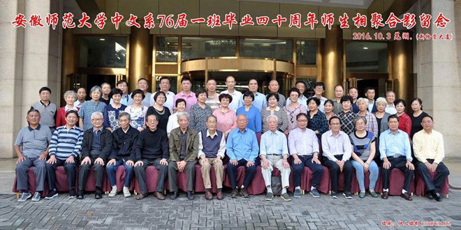 所以,我们这一次聚会,一定要回到母校的怀抱,一定要回到老师的身边。今天,纵然我们已是鹤发白首,我们还是常常回忆起40年前的一幕幕场景,甚至是一个个细节。尽管“上管改”“反潮流”,批“水浒”诛“红楼”,“批林批孔”,“诛法批儒”,斗争不停,干扰不断,把课程教学的系统性、衔接性肢解得支离破碎,但我们的母校,我们的老师,还是千方百计,尽一切可能,引领我们见识古今中外语言文学的神秘和浩瀚,美妙和精深。我们永远铭记着母校!我们永远铭记着每一位老师!