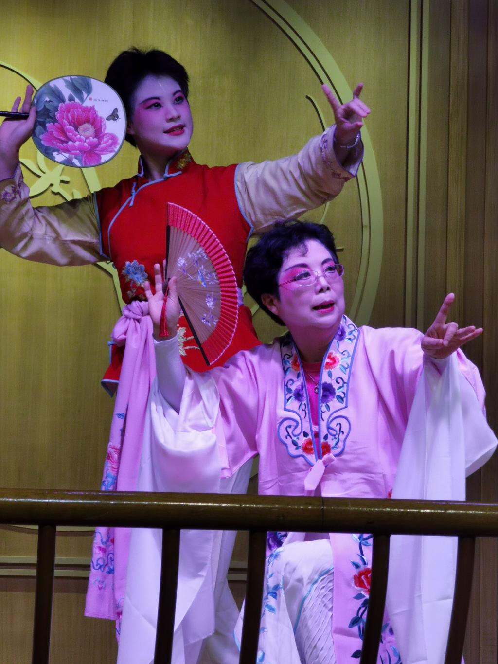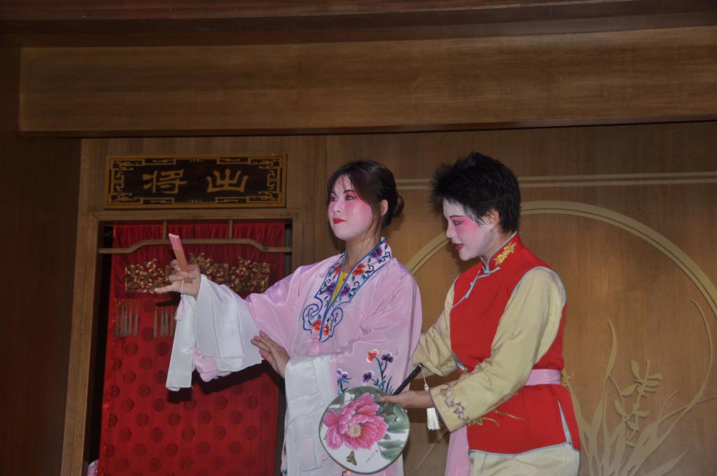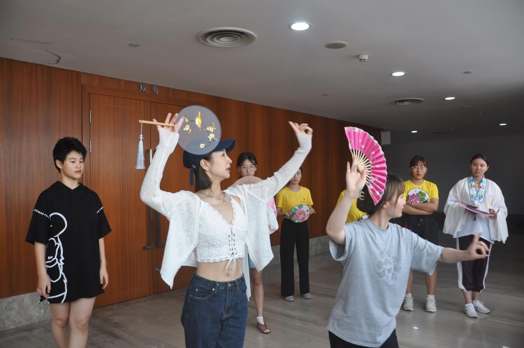 “指尖藏心事,腕内有悲欢”,花旦指间翻转的折扇里隐藏了不尽愁思无奈,皓腕抖动的水袖中氤氲着万种风情。在昆曲学习中,队员们不仅要唱好腔调,也要走好台步,还要练熟指法。一次次细扣动作、一轮轮确认站位、一遍遍对曲目的演唱与纠正……苏州昆剧院里,随着老师的详细示范,队员们逐字逐句地纠正动作与唱腔,于唱念做打中解读戏中人的情绪,在眼波流转里展现内心情感,使表演具有感染力,力求完美展现昆曲之美。