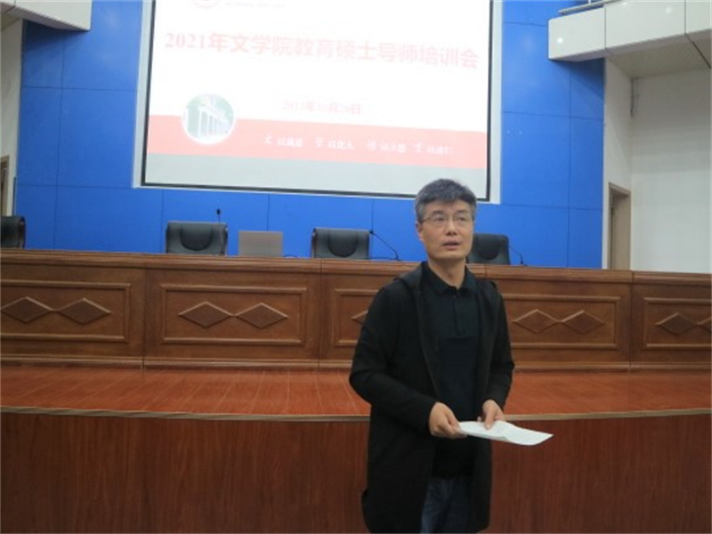 会上,李伟副院长首先对本次培训会的基本内容做了简要阐述。接着,王昊教授首先解读了我院学科教学(语文)专业的培养方案和实习方案,接着就研究和实践能力培养中的“课程讲授注重实践”“积极组织学生参加教师技能大赛”“邀请中学名师举办系列讲座”“严格执行实习制度”“建设高端实习基地”等方面的优势进行了概括和说明,希望导师们在培养过程,结合学院举措,认真落实到具体培养上。同时王昊教授指出所有学科教学(语文)专业的教育硕士都应认真研读专业培养方案,明确自身学习目标和未来发展的方向。
