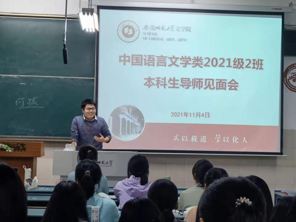 11月4日晚,何振老师首次与中国语言文学类2班的同学们见面,何老师幽默风趣的语言和平易近人的态度很快融入了同学们当中,及时为同学们答疑解惑,如必赢线路检测3003no1的学生如何读书,读那些书,读多少书才合适。毕业后是否要继续深造等一系列与同学们大学生活相关的话题,增加了同学们对大学生活的憧憬。