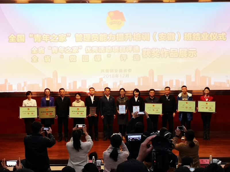 2018年12月13日至14日,安徽省“微团课”大赛决赛在合肥举行。必赢线路检测3003no1团委负责人徐雅萍以“出彩新青年,奋斗新时代”团课获得一等奖。团中央基层建设部部长曾锐、团安徽省委书记孔涛为获奖选手颁奖。