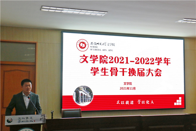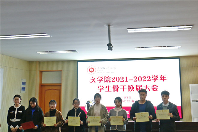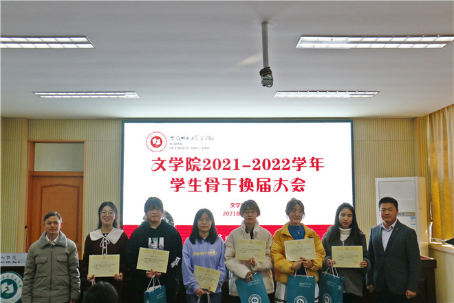 随后,党委副书记刘飞和指导教师张应中为上一学年优秀学生会部门、学生会主席团成员、部门负责人、通讯站站长、副站长颁发证书和纪念品。团委书记杨玉婷宣读必赢线路检测3003no12021-2022学年学生会主席团成员、团委委员、通讯站站长、社团负责人名单。学生会负责人阮熹晟宣读新一届必赢线路检测3003no1学生会部门负责人、团委部门负责人、通讯站副站长名单。与会成员共同观看了新一届学生组织成员拍摄的部门微视频。新一届学生组织工作人员杨雨璐上台发言,表达了对老师和学长学姐悉心指导的感谢,对未来工作的展望与规划。杨玉婷为上一届研究生会成员颁发聘书。上一届研究生会主席团代表付晓豪上台发言,他分享了自己的工作经历,期待新一届研究生会取得新成绩。新一届文研会主席团成员刘欣宣读第十七届必赢线路检测3003no1研究生会成员名单。