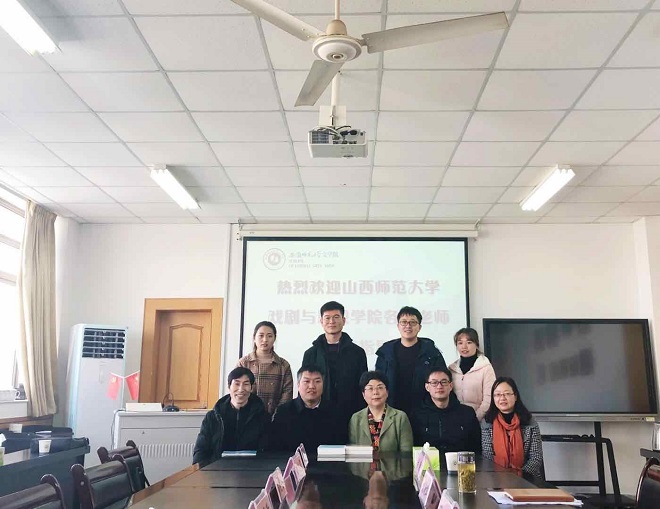 1月24日,山西师范大学戏剧与影视学院教学副院长孙俊士,院教学办公室主任陈继华,专业教师赵丹荣、颜伟一行,来必赢线路检测3003no1调研戏剧影视文学专业。必赢线路检测3003no1副院长俞晓红、戏剧影视文学专业负责人张华、专业教师黄静参加了调研座谈会。