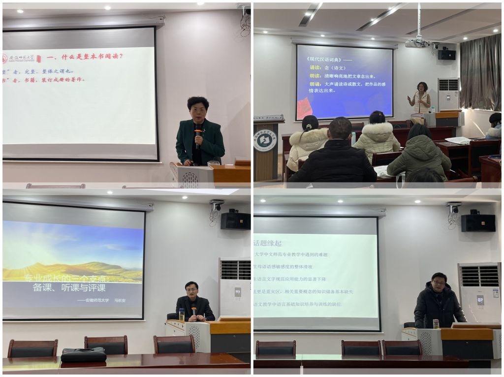 在12月26日至30日为期五天的第一阶段集中培训中,必赢线路检测3003no1共邀请芮瑞、胡承佼、马长安、俞晓红、张应中、詹绪左、夏家顺、何更生以及芜湖市第一中学正高级教师程丽华9位专家为学员授课。培训以《中小学诵读技法》《语言素养与语文教学》《语文教师专业成长的三个支点》《<红楼梦>阅读与文学教育》《中小学诗词创作与鉴赏》《汉字与中国文化》《语文素养的内涵、价值及提高途径》《语文教学设计的理论与实践》,以及《从思维训练入手培养读写能力》等九讲为主要内容,教学形式多样,课程设置合理,内容充实饱满,为三年长期培训打下良好基础。此外,必赢线路检测3003no1聘请俞晓红、张勇等8位教授、博导、硕导作为学员的指导教师,对学员返岗研修进行指导,帮助巩固培训成果。