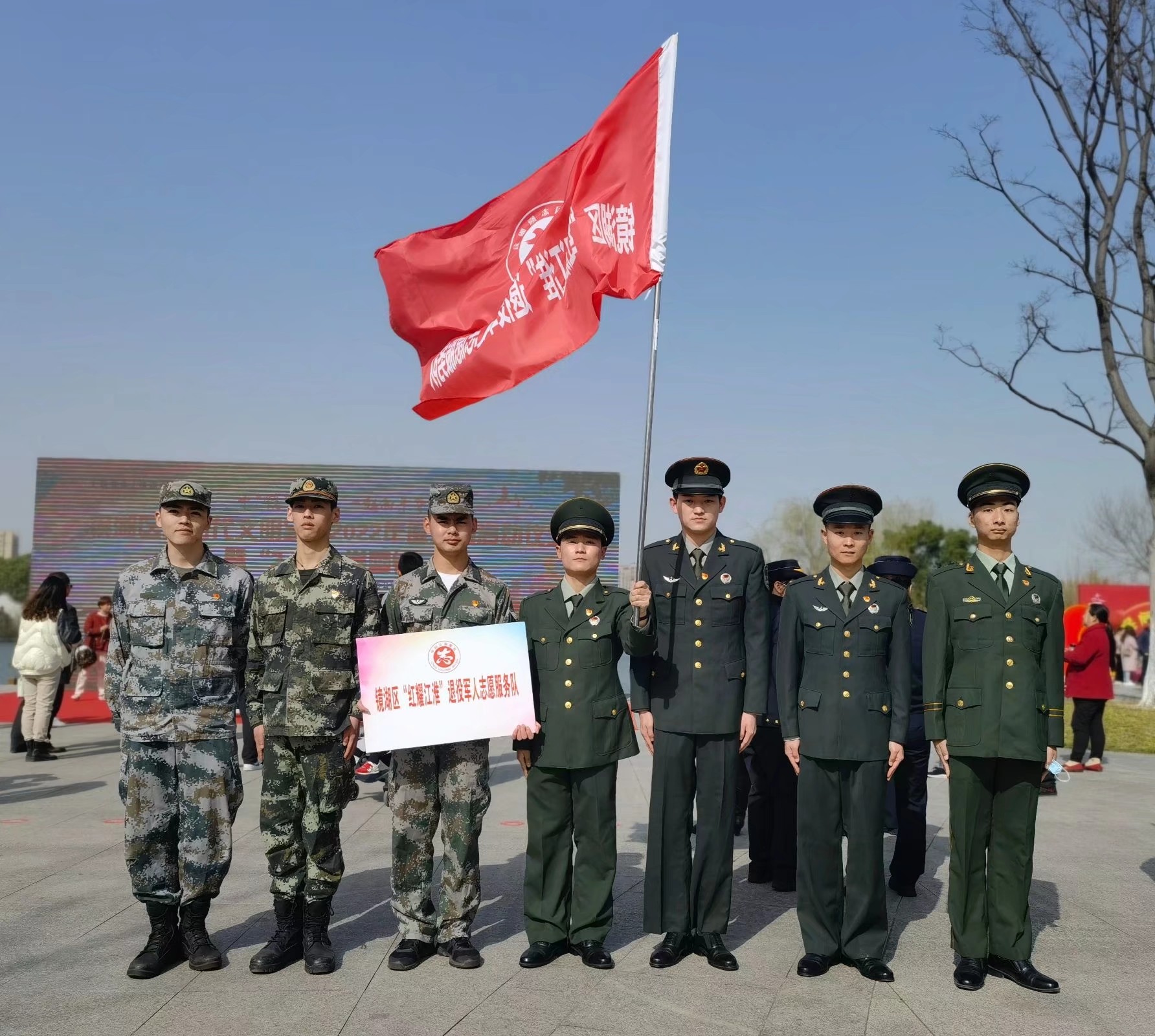 理论学习后,同学们积极行动,充分发挥不怕苦、不怕累、不怕脏的精神,散布在校园的各个角落,手执扫把、垃圾袋等工具,分工合作,帮忙整理校内乱停乱放的自行车,清理草坪上、教室里的残余垃圾。社团五四爱心学校来到社区志愿服务点,给小朋友们传递雷锋精神,学唱《学习雷锋好榜样》,还前往围山村开展志愿植树活动。20级汉语言文学师范专业的陈稷威,心中有爱肩上有责,作为一名退伍军人,在“雷锋日”这一天加入镜湖区“红耀江淮”退役军人志愿服务队,主动承担社会责任,开展红色宣讲,践行奉献精神。