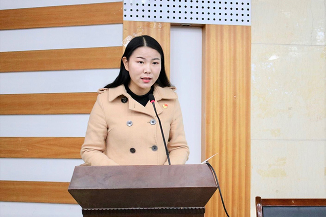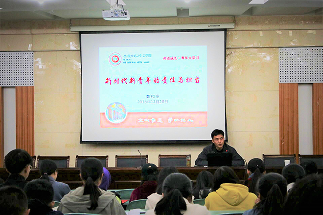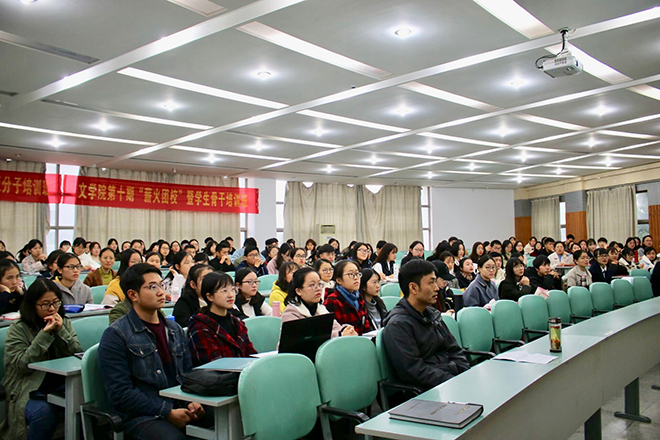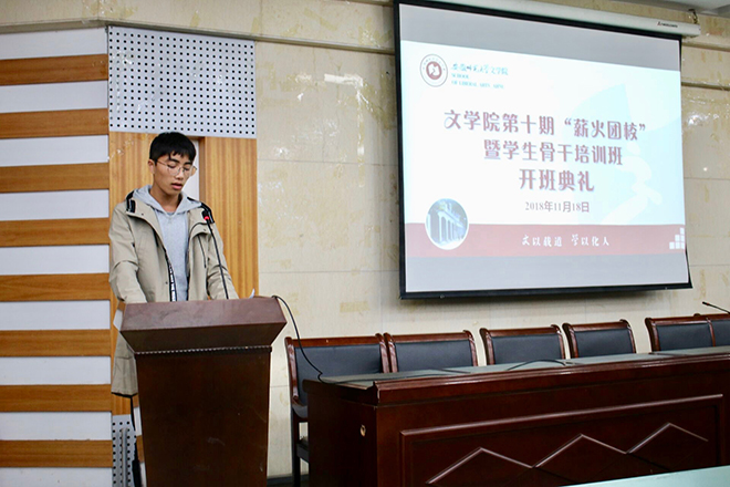 开班典礼在党课班优秀小组的展示下拉开序幕。一张张实践学习的照片,一页页认真书写的笔记,四个小组的展示让团课班的同学们受益匪浅。随后,团课班副班主任刘畅向新学员们详细介绍本期团课班的内容安排与培训要求,并寄语在场学子能在历次理论学习中学有所获、学有所成,在今后的学习与生活中能将所学知识内化于心、外化于行。2018级秘书学专业王天宝代表新学员发言。他表示,团校是加强广大学生思想意识、培养实践能力的课堂,青年团员应在党和国家的号召下,努力学习、提升自我,争做品学兼优的大学生,助力中国梦早日实现。