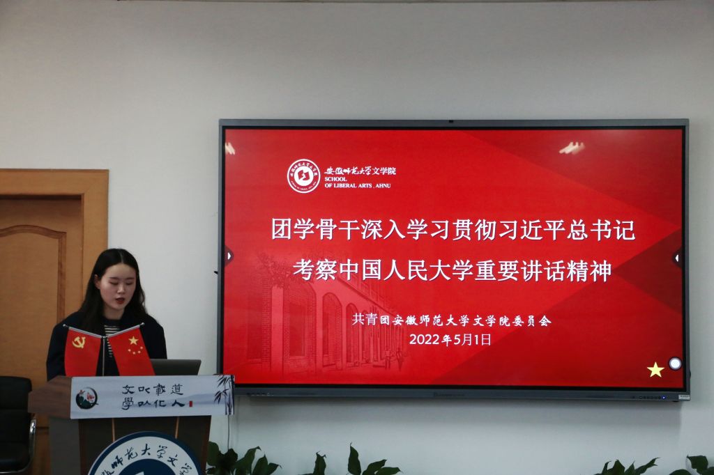 会上,杨玉婷带领大家集体学习了习近平总书记考察中国人民大学重要讲话精神,并观看《习近平在中国人民大学考察时强调坚持党的领导传承红色基因扎根中国大地走出一条建设中国特色世界一流大学新路》新闻视频。学院团委委员及各班团支书交流了学习体会,大家一致认为,习近平总书记的重要讲话令人倍受鼓舞、倍感温暖,为青年成长发展指明了前进方向。杨玉婷希望青年学生要传承好党的红色基因,让“听党话、跟党走”的信念成为毕生追求,用实际行动诠释爱国心、报国志,展示新时代青年奋进新征程、建功新时代的青春担当。此外,杨玉婷还解读了《新时代的中国青年》白皮书和《新时代加强和改进共青团思想政治引领工作实施纲要》,她表示,新时代青年要把握时代机遇,坚定理想信念,脚踏实地做好每一件事,争做不负时代、不负韶华的有为青年。同时,她还希望团学骨干在学习中把牢方向、坚定信念,在工作中由点及面、扩大影响,在实践中牢记嘱托、展现担当,以实际行动争做复兴栋梁、强国先锋。