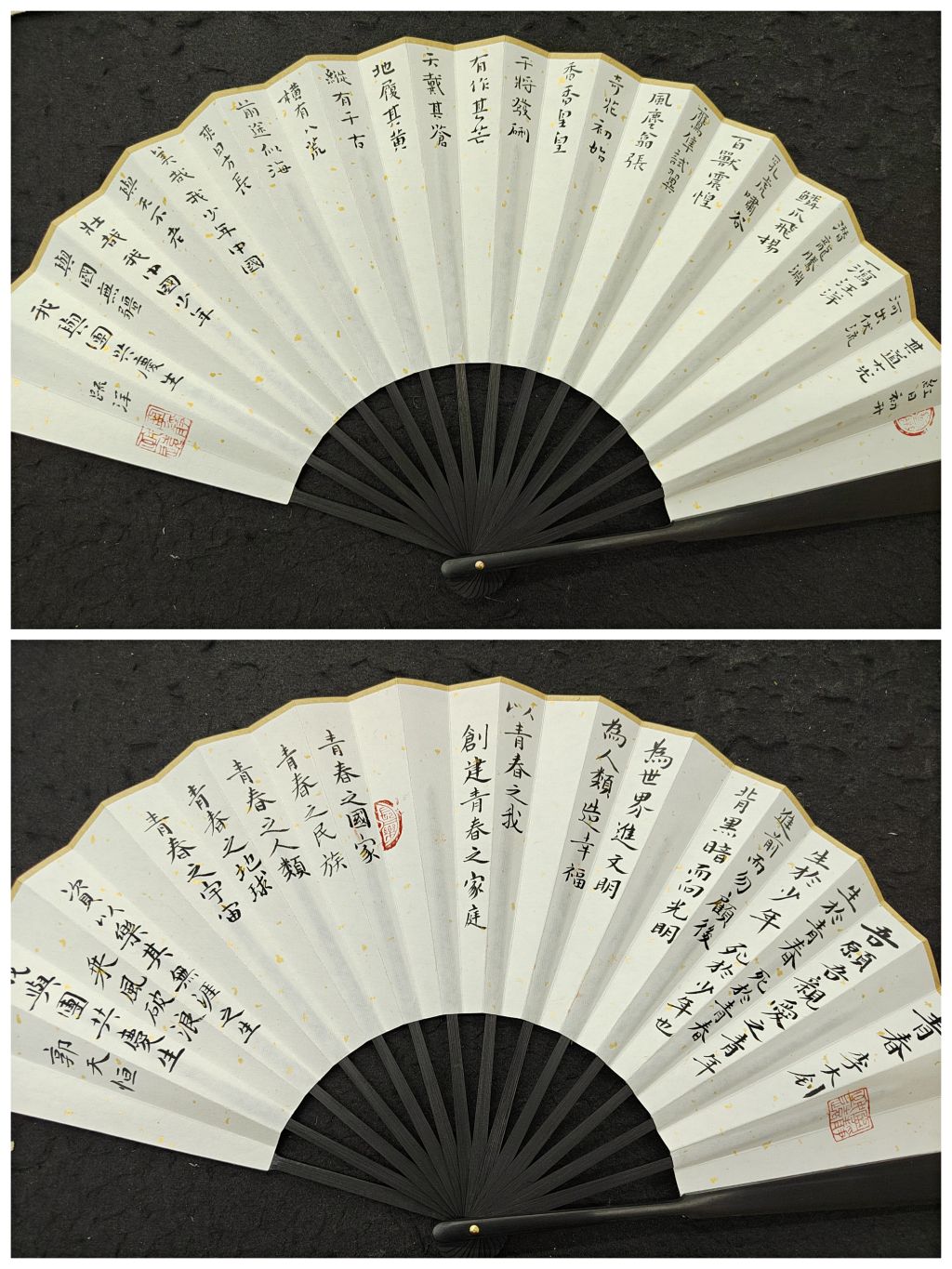 随后,必赢线路检测3003no1学生社团代表为四位同学送上了亲手制作的专属生日礼物,宣讲团同学用文字和诗歌传递了礼物背后的深刻含义和美好祝福。德雅书苑制作了名为《中国梦》《我和我的祖国》的主题剪纸,郑璇为我们带来《中国梦,我们的梦》主题宣讲,阐述了青年人与中国梦之间的关系,“青年梦是中国梦的组成部分,中国梦是青年梦的根本保障和延伸。青年人的理想与担当,归根结底,汇聚在实现中华民族伟大复兴的中国梦上。”赭麓书画社代表赠送《青春》《少年中国说》书法作品折扇和手绘红船团扇,杨雨璐和万振锐为我们带来了《青春》、《少年中国说》诗歌朗诵,在铿锵有力的声音中,体现当代青年奋进新征程,建功新时代的理想担当。