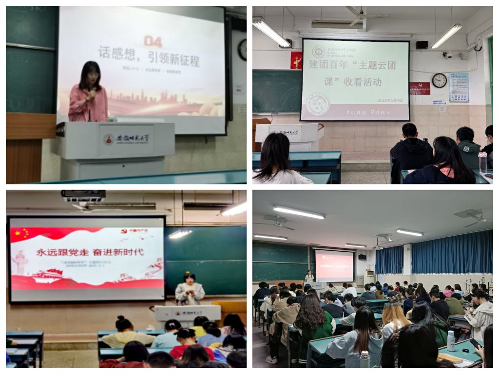 线下多形式、线上云团课,系列团日活动齐悟团之成长。百年风雨兼程,一路筚路蓝缕。学院各团支部线下通过主题班会、主题观影、主题宣讲、小组研讨等多种形式,开展“建团100周年”主题团日活动、“与团共庆生,奋斗正当时”红色主题生日会、“五四三行诗歌”活动、“翰墨丹青·红心向党”手抄报活动、“青春献礼二十大,强国有我新征程”首届大学生讲思政课比赛和劳动教育活动等。线上收看主题云团课,同学们围坐在屏幕前,聆听党的教诲,感受百年来共青团所经历的风雨,对建团百年的特殊意义有了更深刻的认知,在丰富多彩的系列活动中感悟真理力量和实践力量。