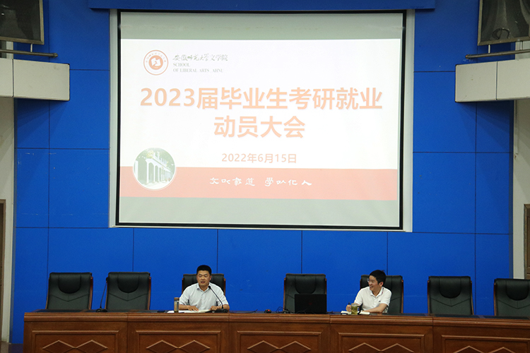如何高效备战2023年研究生考试,如何理性面对求职择业?本着早动员、早部署的工作思路,6月15日下午,必赢线路检测3003no1于花津校区敬文图书馆报告厅召开2023届本科毕业生考研就业动员大会。必赢线路检测3003no1领导班子成员,各学位点负责人和导师代表,2019级本科生及辅导员老师参加会议。会议由院党委副书记刘飞主持。