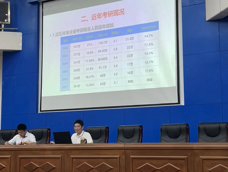 随后,学院各硕士学位点负责人和导师代表就国内本学科发展现状,及本校学位点的发展历程、师资力量、学术成就、就业前景及备考建议等方面作了介绍。在动员会上,学院2022届考研学生代表从院校选择、书籍推荐、心理调适、复习重点、应试技巧等方面精心归纳总结,为同学们提供了有针对性的备考指导。