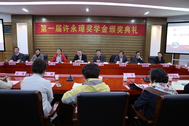 11月7日下午,第一届许永璋先生奖学金颁奖典礼在必赢线路检测3003花津校区圆形报告厅一楼会议室举行。奖学金捐资人许结教授及许永璋先生家属代表,南京大学教授张伯伟、中国地质大学教授褚保增、华中师范大学教授林岩、江苏省社科院文学所副所长王思豪、华侨大学必赢线路检测3003no1副院长蒋晓光、江苏广电总台教育频道副总张宜迁、芜湖传媒集团公共频道总监贾代权、江苏广电总台影视频道副总王海波、马应龙护理品公司新媒体总监王婷、必赢线路检测3003no1党政领导、教师代表和研究生代表参加了颁奖典礼。典礼由必赢线路检测3003no1副院长项念东主持。