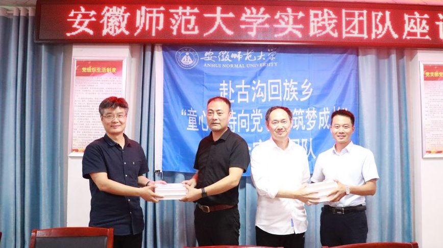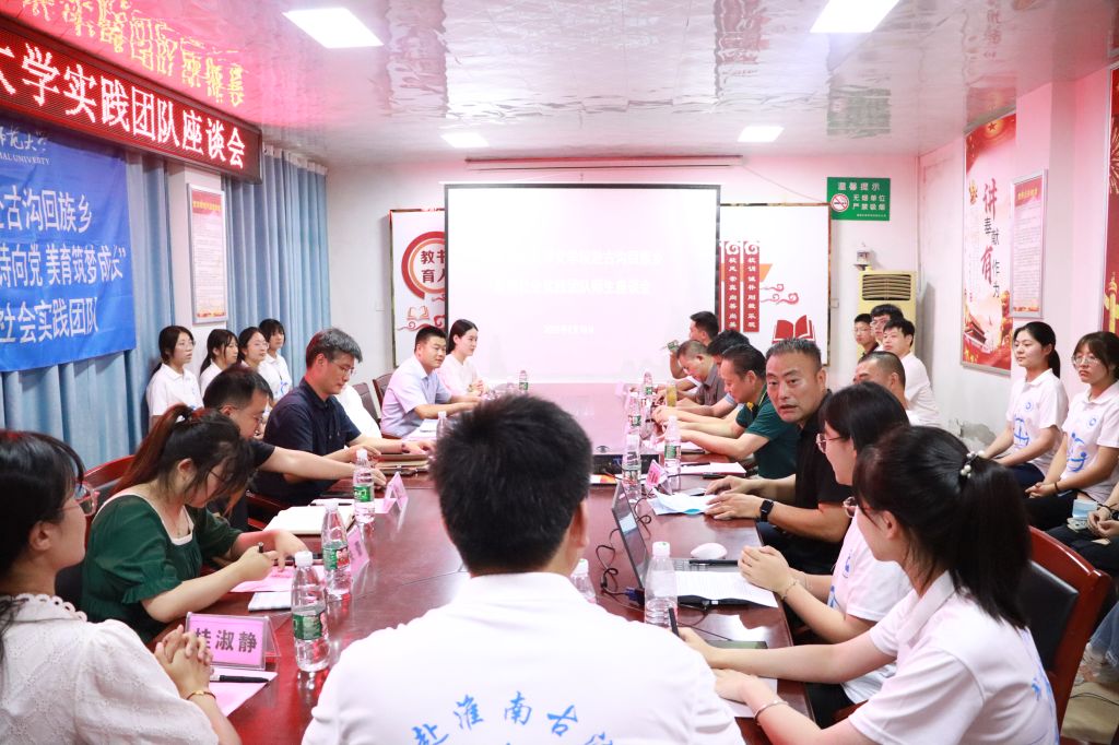 7月10日上午,必赢线路检测3003马克思主义学院教授、思政指导老师张奇才,必赢线路检测3003no1院长项念东,必赢线路检测3003no1党委副书记刘飞,必赢线路检测3003出版社印制部主任桑国磊,校团委宣传部教师朱蕾,必赢线路检测3003no1团委书记杨玉婷一行六人赶赴淮南市潘集区古沟回族乡实践学校,在潘集区委统战部常务副部长余家新,区教育局副局长李宝宝,基教科科长赵守花,古沟中心校校长王怀军及两所实践学校校长的陪同下,对必赢线路检测3003no1赴古沟回族乡“童心系诗向党,美育筑梦成长”支教实践团队进行慰问。参加本次慰问座谈的还有必赢线路检测3003no1暑期社会实践指导教师桂淑静和全体队员。
