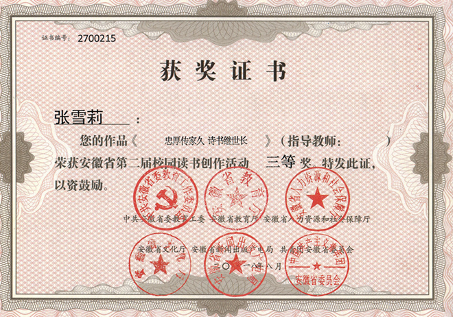 近日,安徽省第二届校园读书创作活动结果公布,我院师生积极参与,斩获佳绩,获得一等奖2名,三等奖4名,优秀奖6名。学院承办的中华诗词大会活动获得“优秀读书品牌活动奖”。