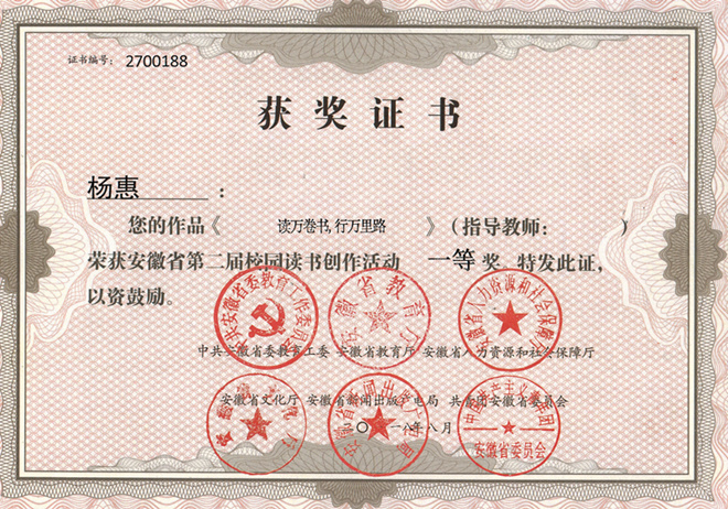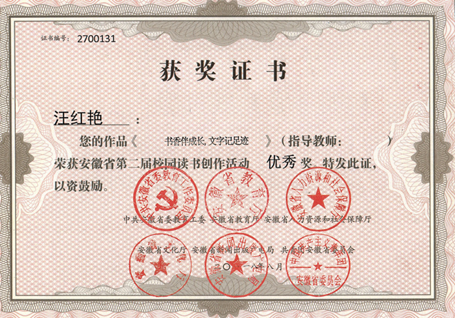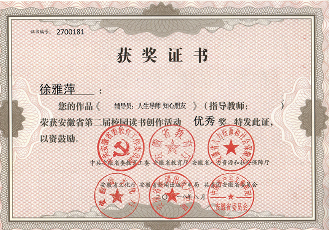 学生组校赛由校团委、图书馆、校学生会主办,必赢线路检测3003no1团委、学生会承办。四月伊始,学院高度重视,在学校部门的指导下,统筹组织,精心准备,积极参与,上报参赛作品材料。经过层层角逐,教师组学生组获奖数均位居全校之首,芮瑞获得“优秀指导教师”称号,作品《我让孩子爱读书》获优秀奖;杨惠《读万卷书,行万里路——家风无言》荣获一等奖;张雪莉《忠厚传家久,诗书继世长》荣获三等奖;汪红艳《书香伴成长,文字记足迹》和徐雅萍《辅导员:人生导师,知心朋友》荣获优秀奖。学生组比赛中,魏晓涵凭借作品《愿你有勇气晃着膀子,走着现实主义的大道——读< 刀锋>有感》荣获一等奖;李瑶瑶的《网》、陈子昂的《三人行》、周雪洁的《梦回唐朝——我读唐诗》荣获三等奖;钟昱韬的《一种生命的超越》、袁伊佳的《红红富士》、汪灿的《爝火不息,热血难凉——读< 习近平的七年知青岁月>有感》等作品获得优秀奖。