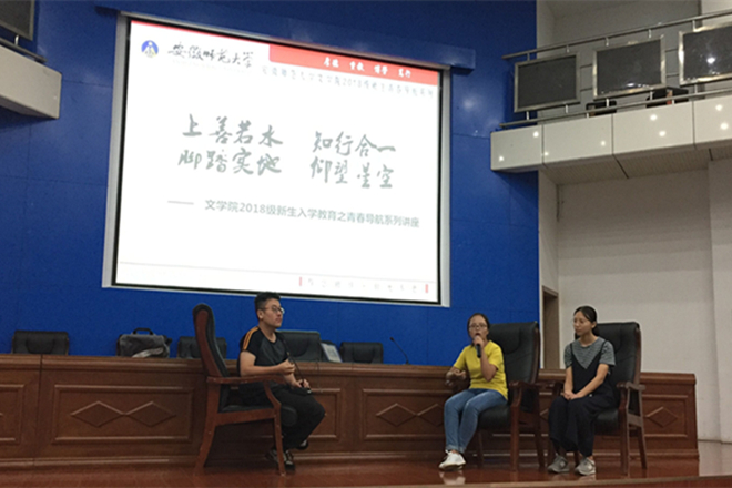 9月9日上午,2018届优秀毕业生、南京师范大学研究生黄萍、张艺馨在青春导航分享交流会上与在座学子分享宝贵经验,她们立足专业根基,切实强调学习的重要性,并分享了自己的学习方法,勉励同学们明确目标、不懈努力,踏实走好大学的每一步。